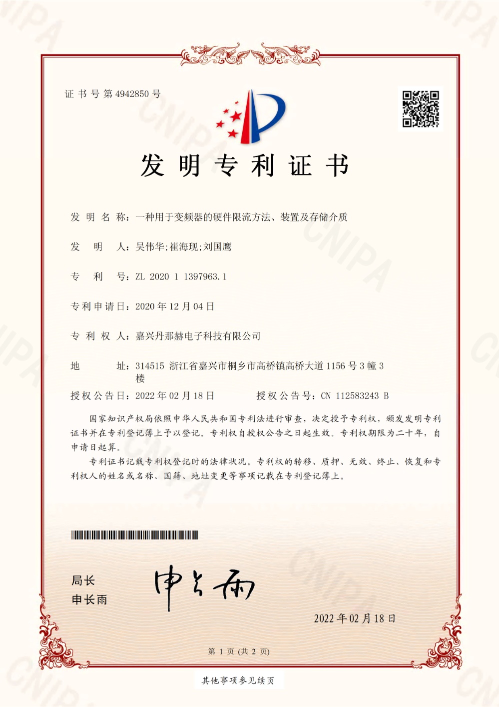 patent certificate