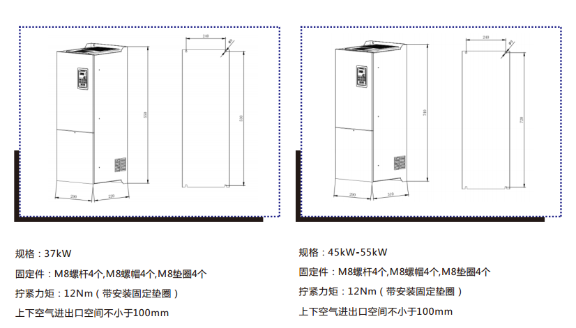 2、高清LED顯示屏,具有快速調試向導,參數上傳下載等功能,通過柜門安裝組件可手持操作或安裝于柜門上。