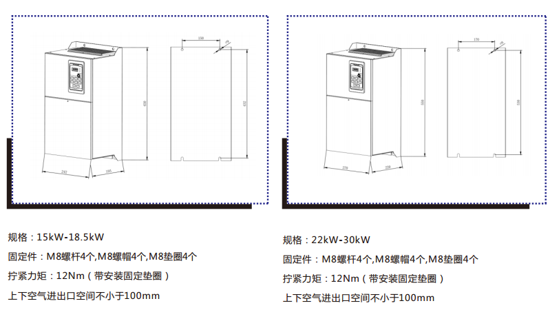 7、獨特雙風道設計,功率模塊和控制單元彼此獨立散熱,提升了產品的可靠性,且支持并排安裝。